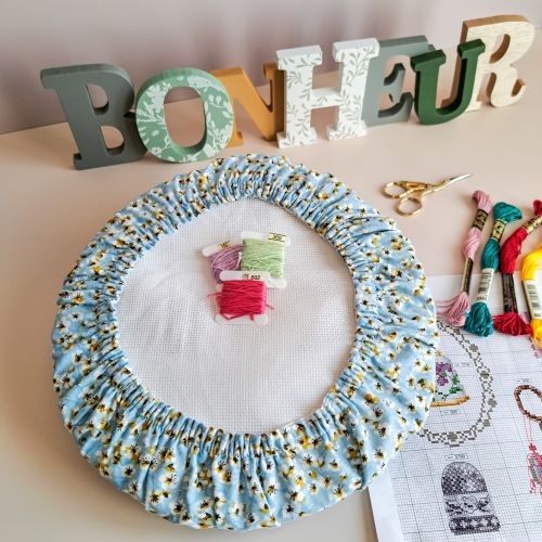 - Entièrement élastiqué pour bien se maintenir au cadre à broder