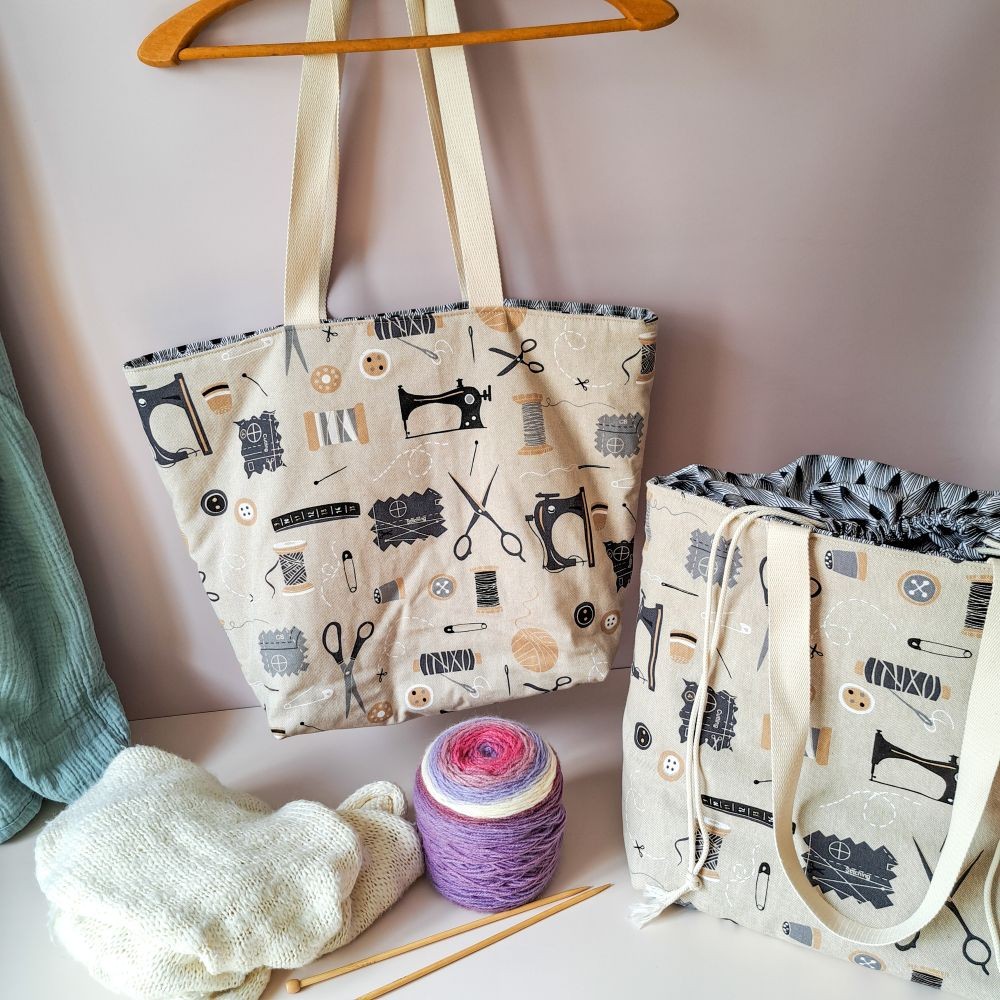 Sac cabas rangement travaux d'aiguilles : Point de Croix, Broderie, Tricot, Crochet, Tricotin, Punch Needle, Broderie Diamant et bien plus encore...