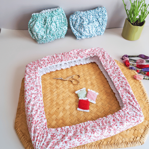 - Entièrement élastiqué pour bien se maintenir au cadre à broder