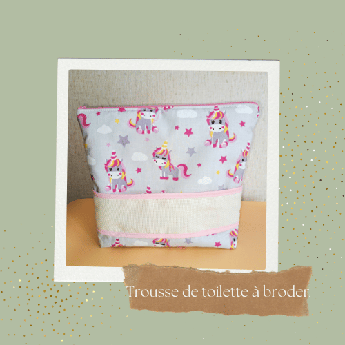 - Trousse de toilette à broder avec bande de toile Aïda de 5,5 pts