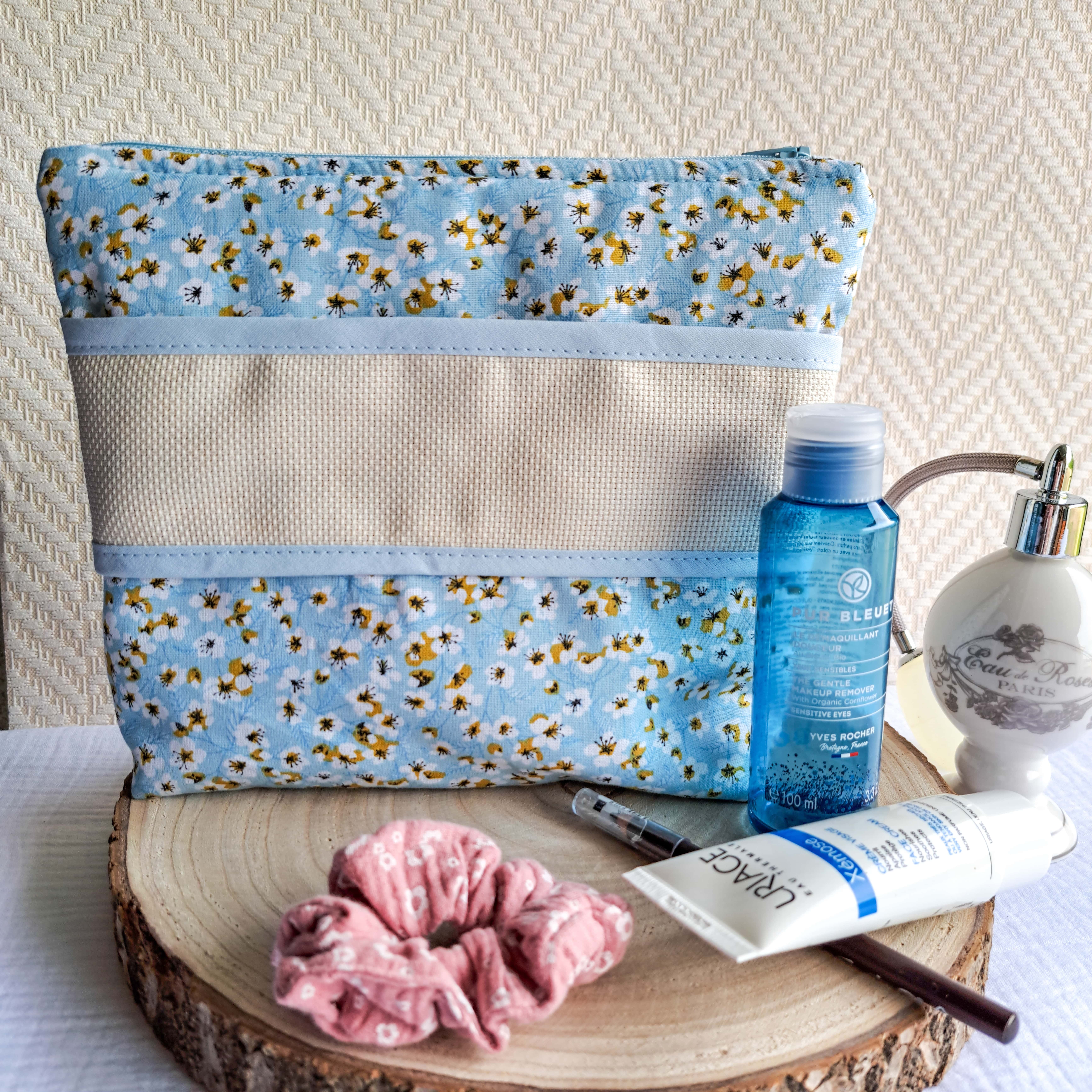 Trousse à maquillage à broder sur toile Aïda 5,5 pts