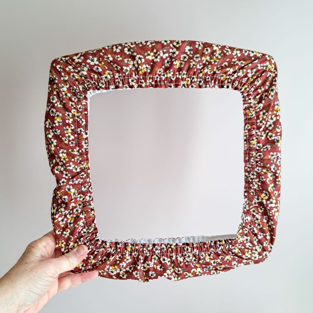 - Entièrement élastiqué pour bien se maintenir au cadre à broder