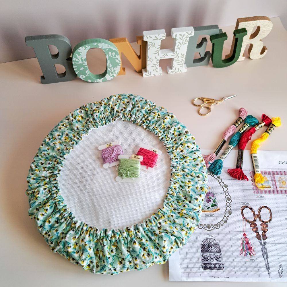 - Entièrement élastiqué pour bien se maintenir au cadre à broder