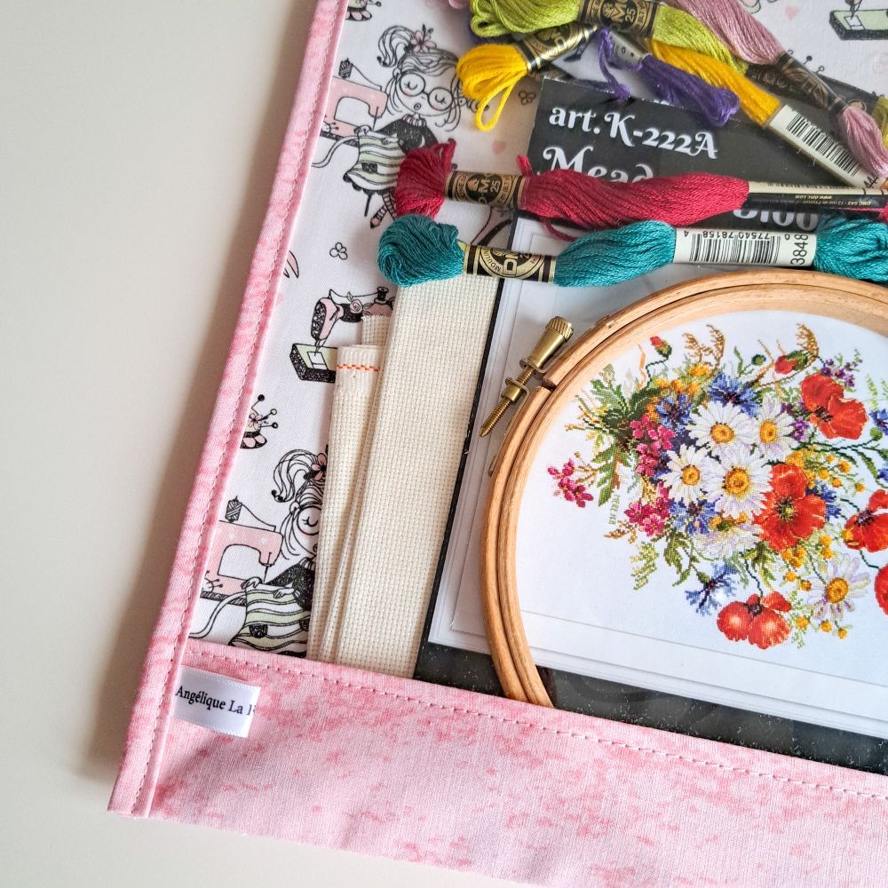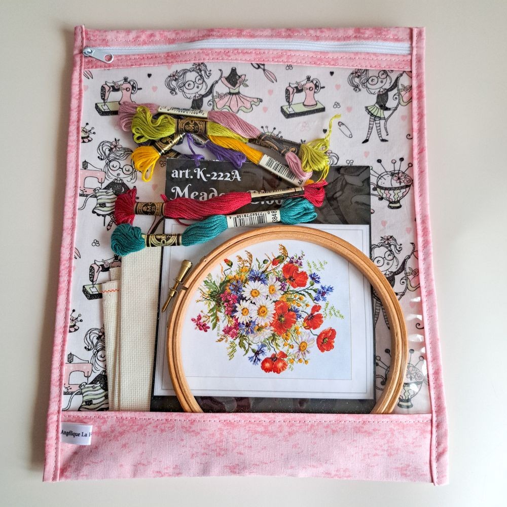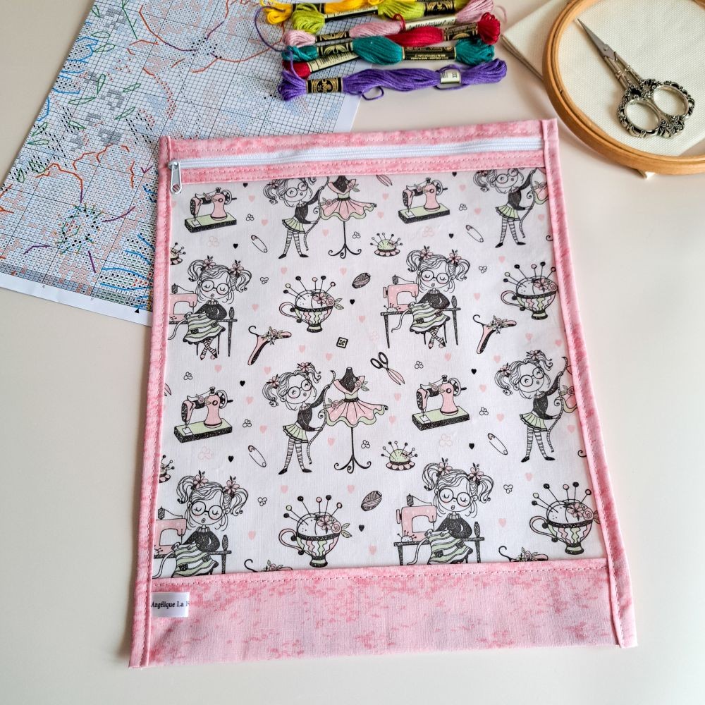 Si son imprimé illustrant une couturière ravira les passionnées de couture, cette pochette est une solution de rangement universelle et nomade pour toutes les disciplines du fil :
