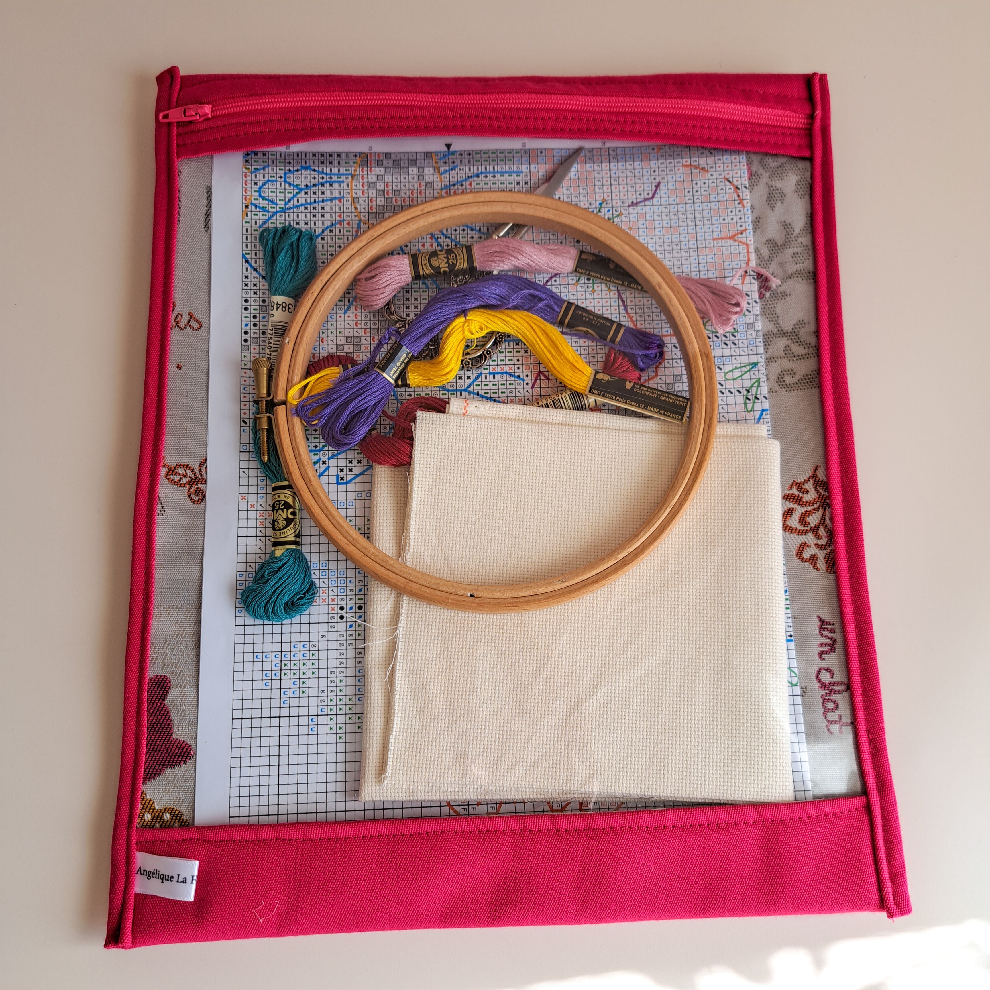 Pochette à projet pour vos travaux d'aiguilles, point de croix, broderie, crochet