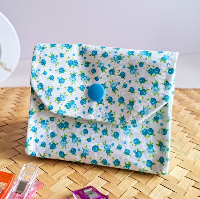 Mini-Poubelle à Fils Pliable & Pochon- Accessoire 2 en 1 pour Couture, Broderie, Tricot - Bleuet